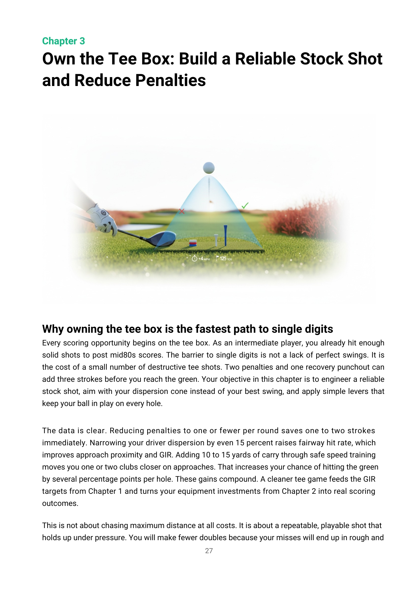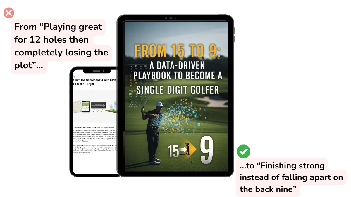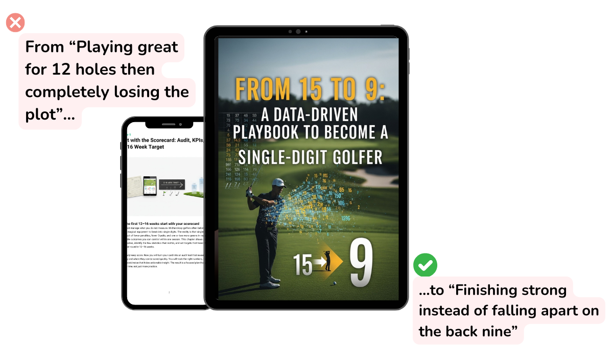 "I always thought I needed more distance or better ball-striking. Turns out I just needed to stop being an idiot with my course management. I'm hitting the same clubs but scoring 6 shots better." - James K., Was 14 HCP, Now 7.9